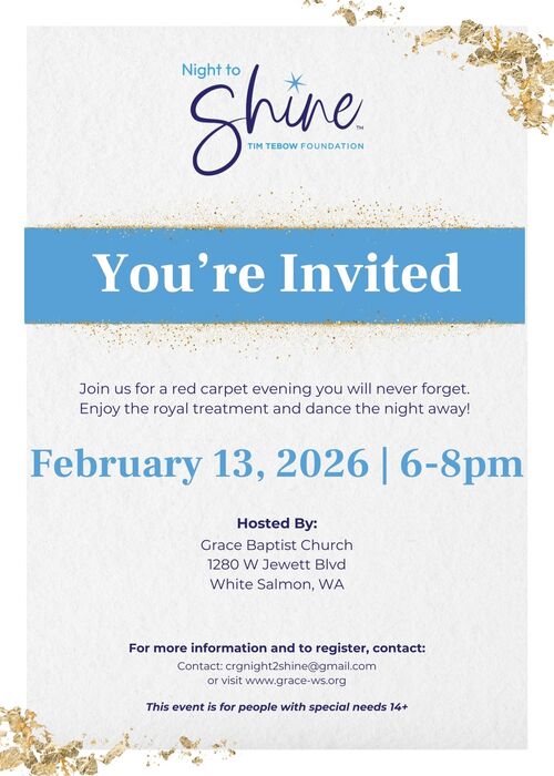 What is Night to Shine? The Tim Tebow Foundation has a great passion for people with special needs and in 2014 launched Night to Shine with a simple vision, work with churches around the country to provide an incredible special experience, centered on God's love, for people with special needs. Grace began hosting in 2019 and were excited to offer an in-person event for 2025! Every guest enters this free event on a red carpet complete with a warm welcome and once inside guests receive the royal treatment with numerous activities to make this a night to remember. The highlight of the night is when every Night to Shine guest is crowned a king or queen!